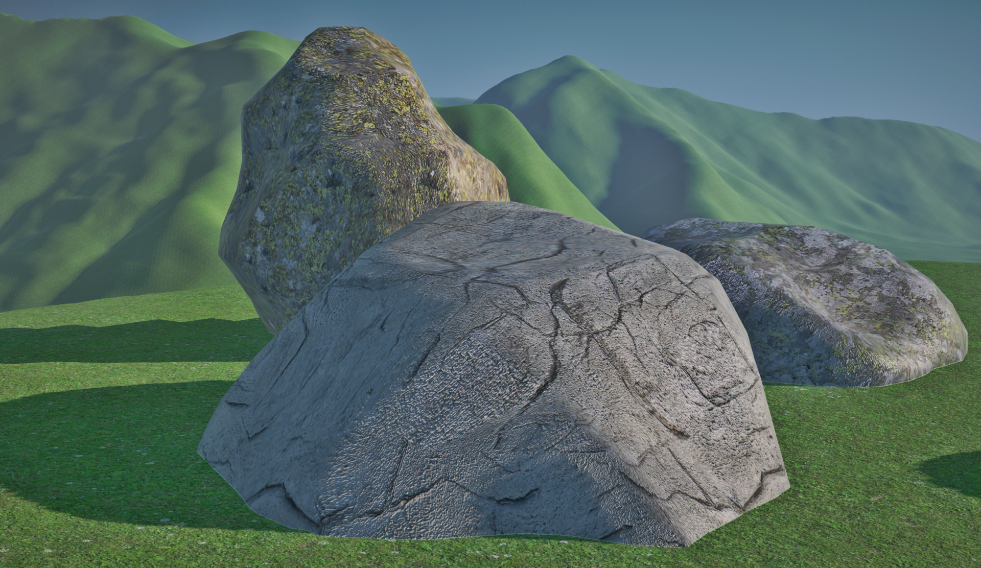 6 Felsen aus dem nordeuropäischen Raum mit Texturen die auf die Bodentexturen im WRS angepasst sind. Die Felsen sind trisparend modelliert, damit sie auch in großer Anzahl verbaut werden können.
